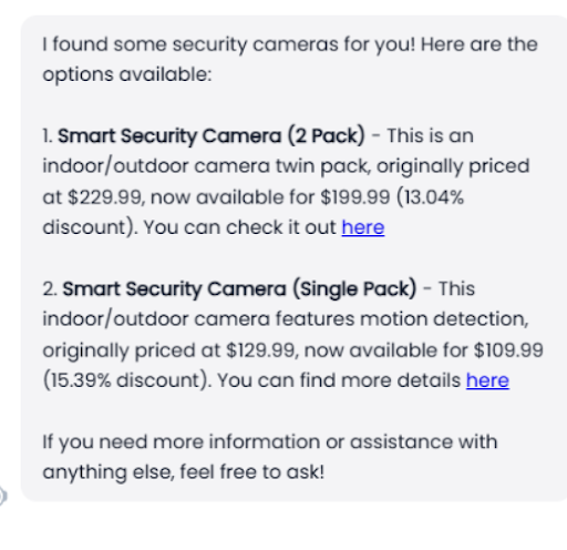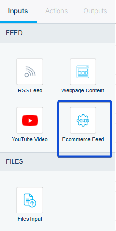 In your chatbot workflow, choose Ecommerce Feed as an input source. This allows the chatbot to understand your store’s catalog, answer product-related questions, and display product cards whenever relevant.